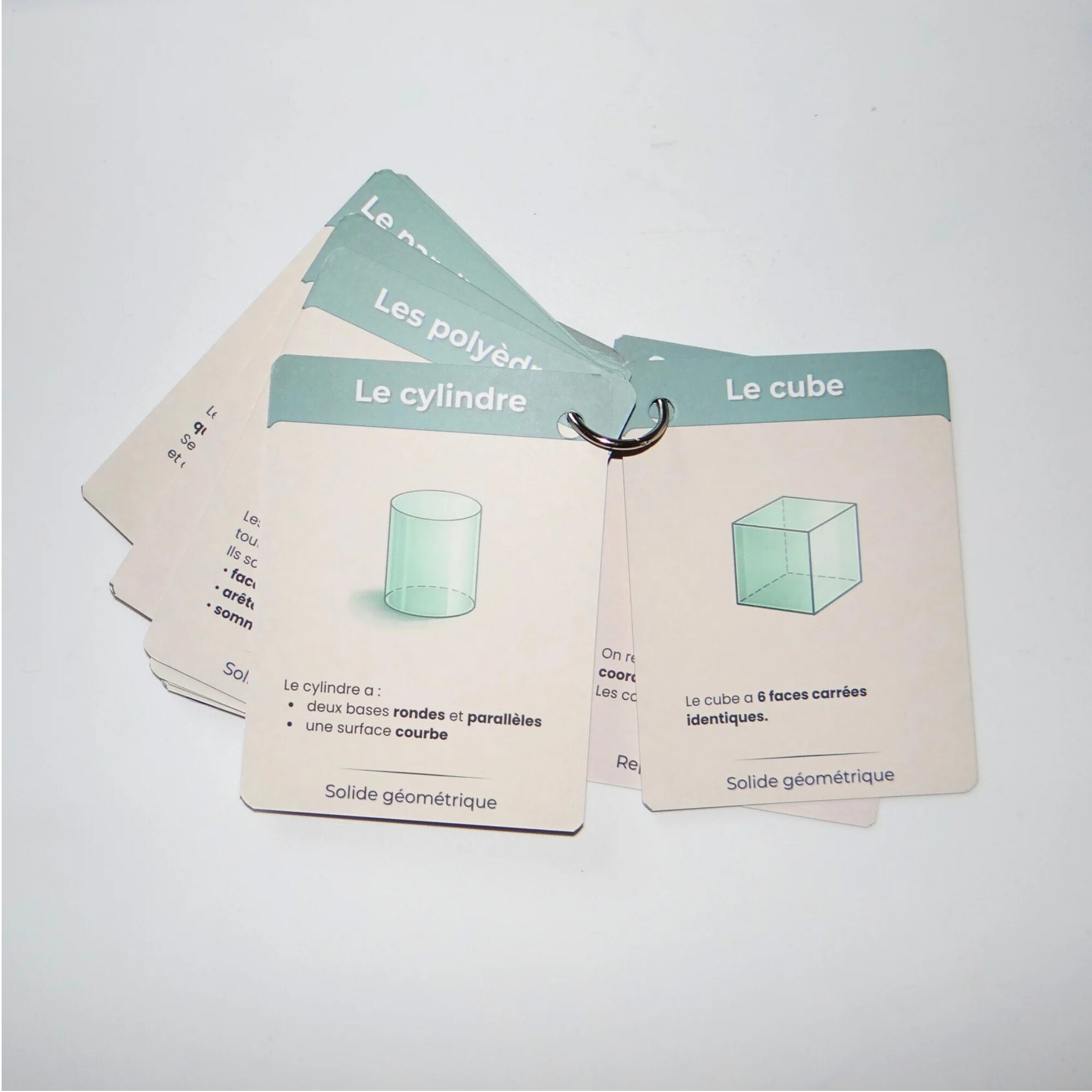 Ce mémo, composé de 16 cartes illustrées recto/ verso qui regroupent 31 notions essentielles de géométrie à maîtriser en fin d’école élémentaire. Conçu pour faciliter la mémorisation et renforcer les apprentissages, il est idéal pour réviser en autonomie ou en classe.