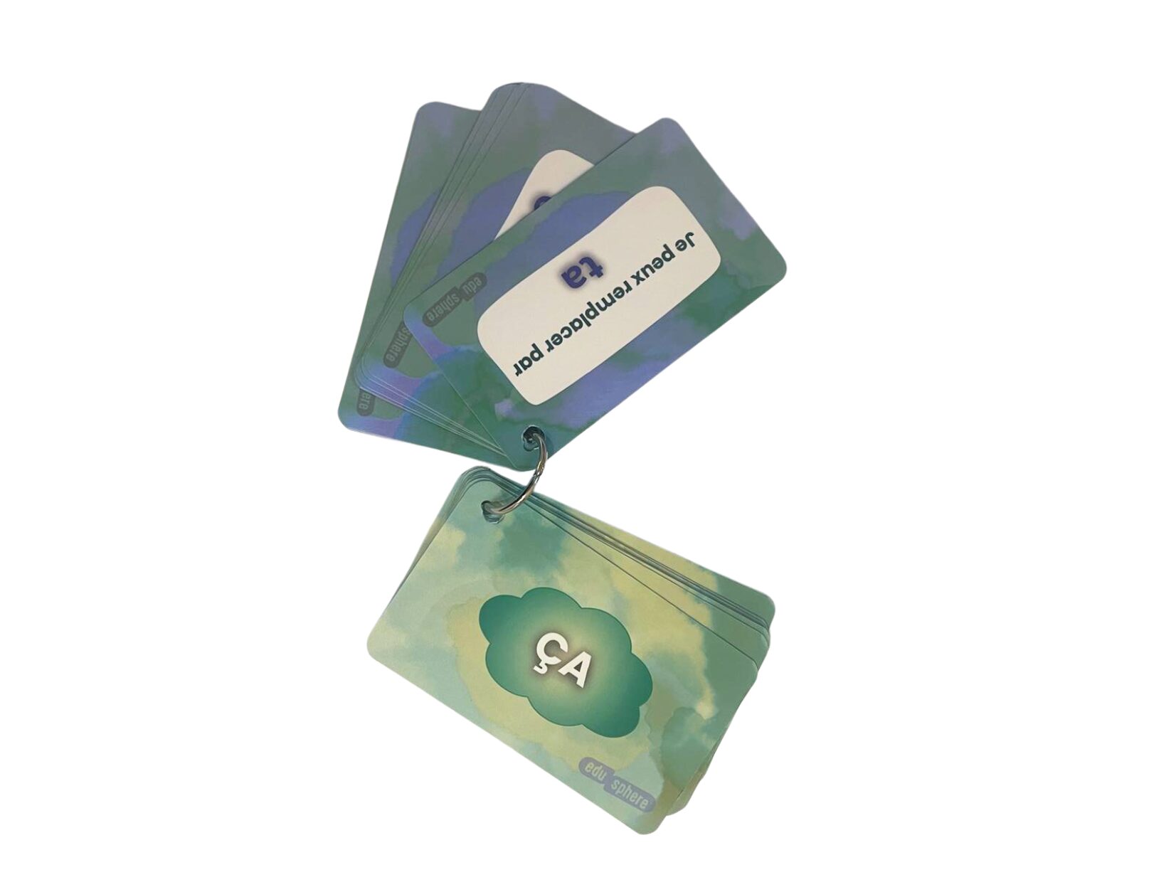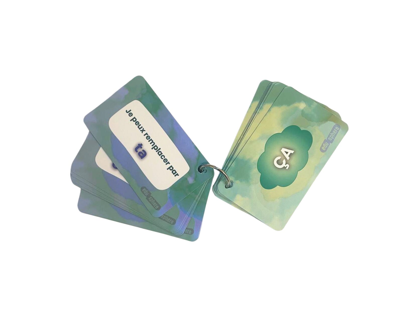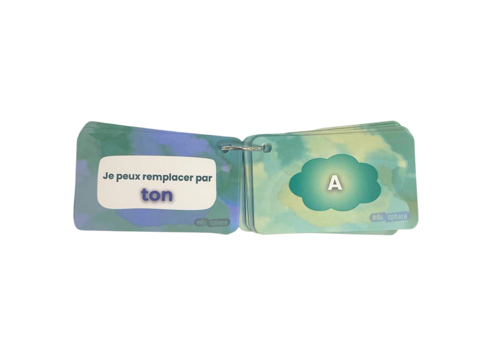 Lorsqu’un enfant a un doute sur un terme, il tourne la carte et trouve la méthode pour être sûr de lui. Un outil pratique pour améliorer son orthographe et réduire sa charge mental à l’écrit.