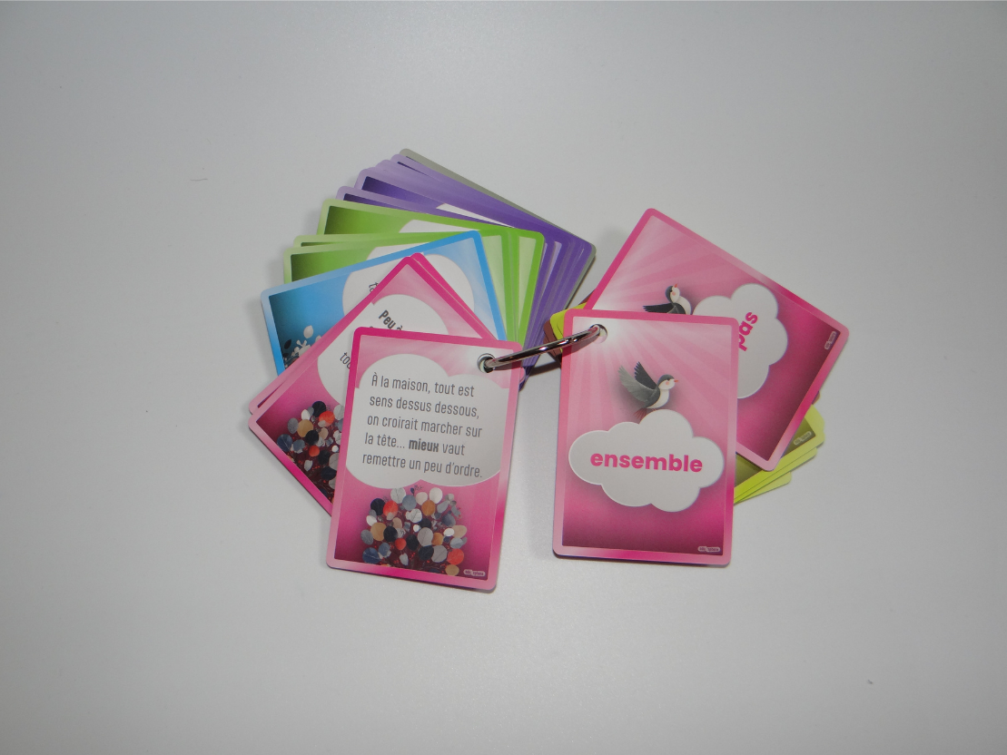 📜 90 cartes recto/verso cartonnées et plastifiées.