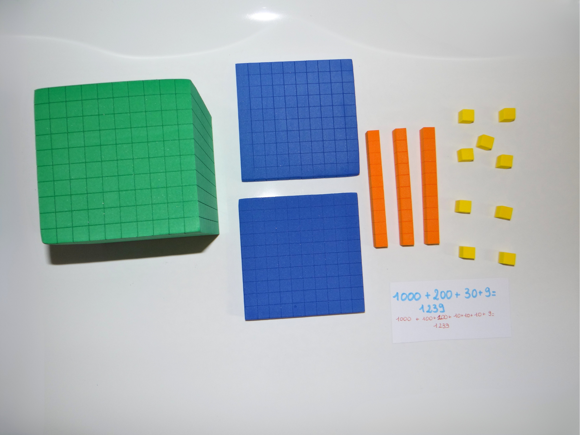 – comprendre les notions d’unités, de dizaines (avec les paquets de 10 unités), de centaines (paquets de 10 dizaines) et de milliers,